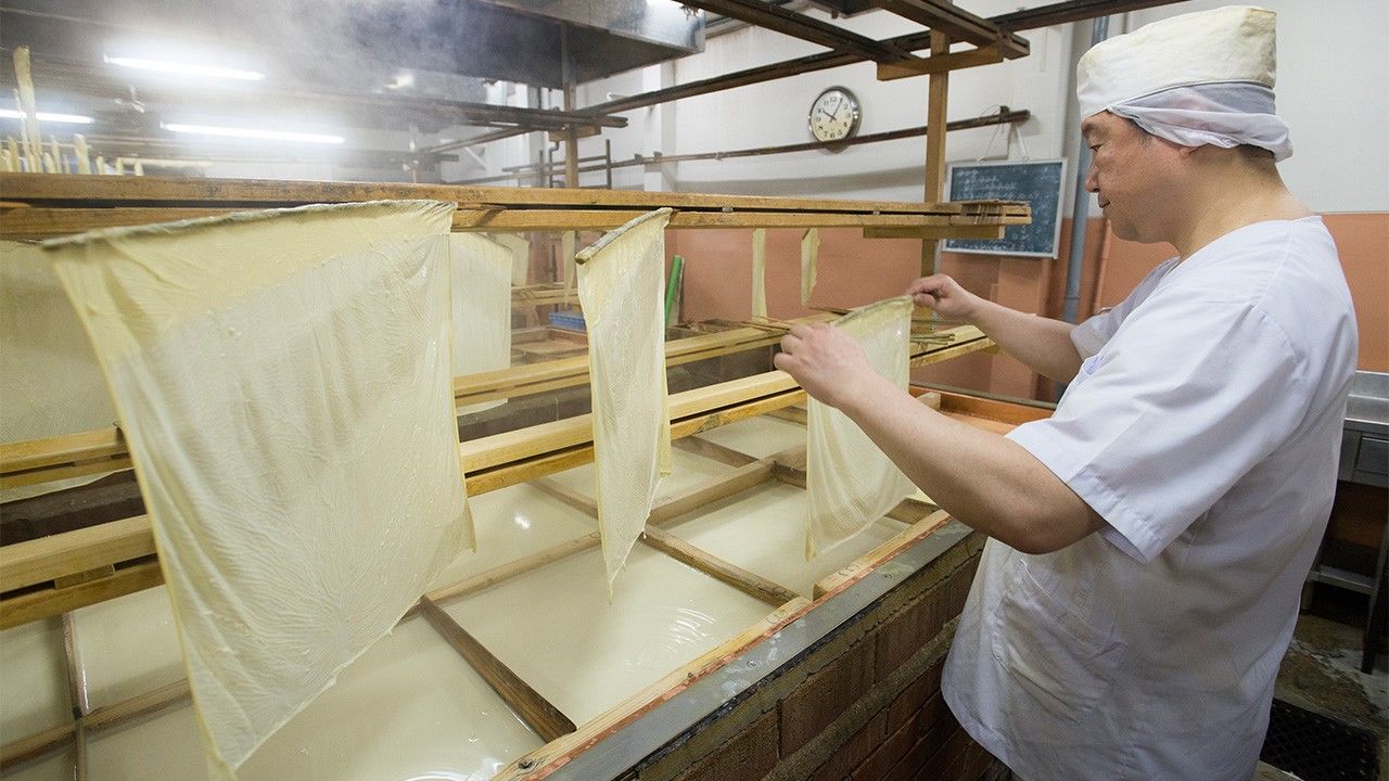 Ces dernières années, le yuba suscite un intérêt croissant, au Japon comme à l’étranger, en tant qu’aliment santé. Entièrement d’origine végétale, il convient également aux personnes véganes, ce qui en fait un ingrédient polyvalent, accessible à un large public.