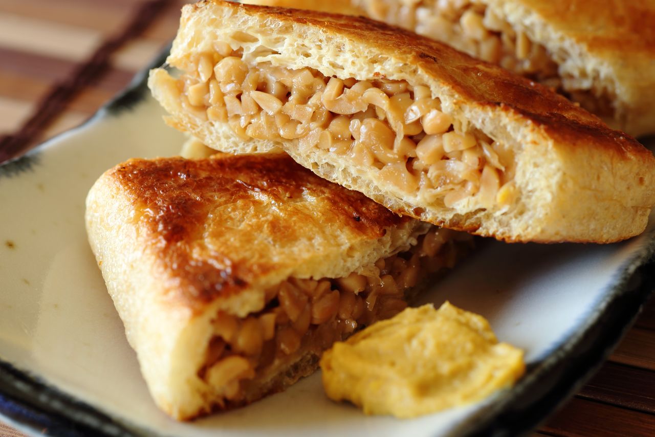 Ils s’agit de poches de tofu abura-age frites grillées, fourrées avec du nattô. Avec du soja sous deux formes différentes, ce plat, principal ou en accompagnement, ne vous laissera à coup sûr pas la faim au ventre.