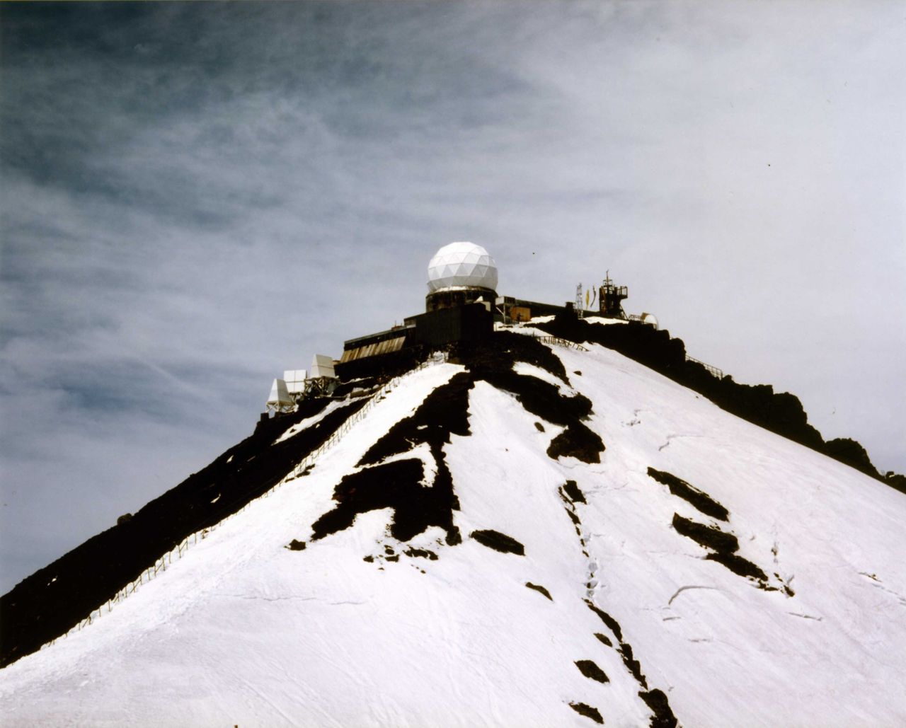 Le dôme du radar avant sa démolition en 2001. L’édifice reconstruit est aujourd’hui exposé au Musée du dôme du radar du mont Fuji, à Fuji-Yoshida, préfecture de Yamanashi. (Photo d’Iwazaki Hiroshi, chef de l’équipe de la Station de recherche du mont Fuji, la SRMF)