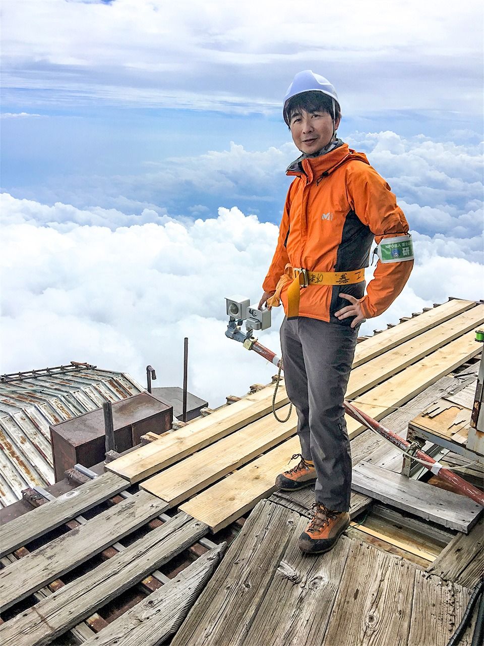 La webcam en direct la plus élevée du Japon est accessible en été. Elle fournit de précieuses données sur les formations nuageuses. Comme on le voit ici, la maintenance des installations de la station occupe une place importante dans les activités de la SRMF. (Photo fournie par l’auteur)