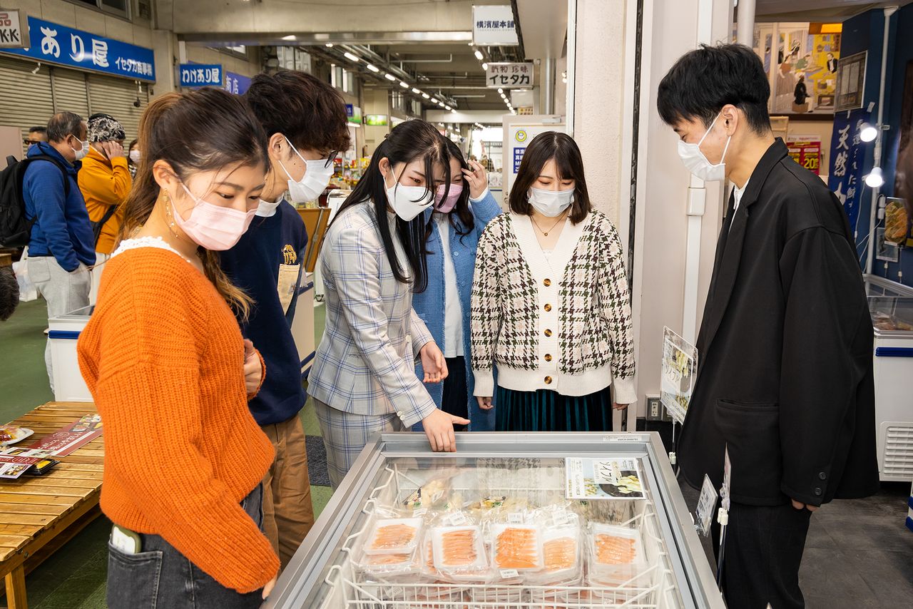 Au marché Nanbu de la ville de Yokohama, à environ une heure en train du centre de Tokyo, le grossiste en produits de la mer Yokohama Food Service (ci-après, Yokoshoku) travaille avec les étudiants de l’Université municipale de Yokohama afin de développer de nouveaux produits alimentaires et des systèmes permettant d’atteindre les Objectifs de développement durable (ODD) des Nations unies. En octobre 2021, l’entreprise a obtenu la certification de l’association « Marine Eco-Label Japan » (MEL) pour transformer et distribuer les produits marins.