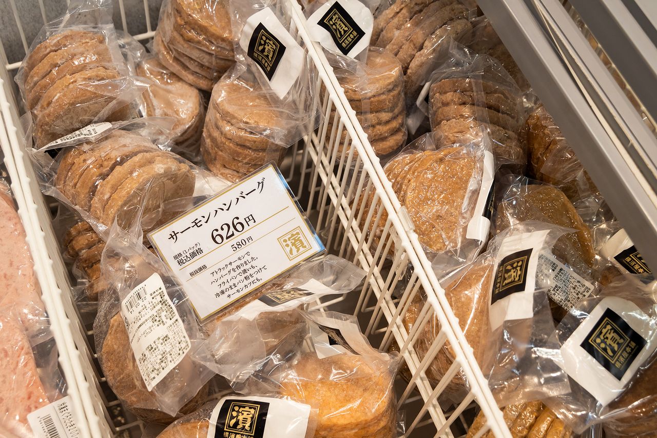 Des paquets de galettes de saumon et de thon (les paquets de 5 coûtent 580 yens, soit 4,5 euros).