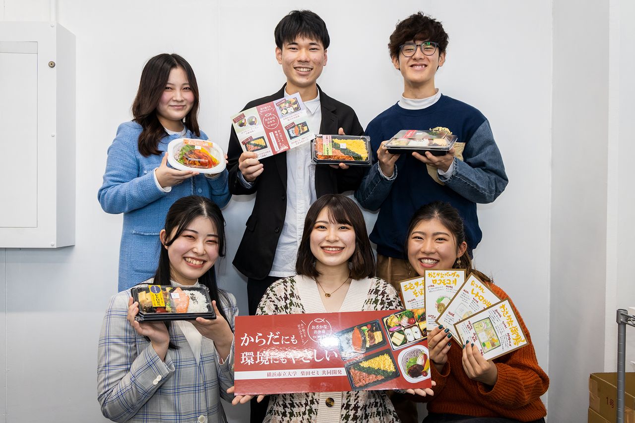 Les étudiants du professeur Shibata posent avec leurs bentô écologiques juste avant la mise en vente des produits.