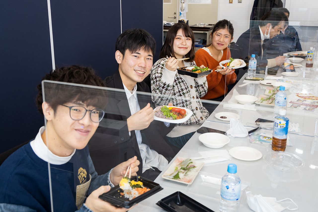 Les étudiants du professeur Shibata se sont mis à développer des déjeuners utilisant les nouveaux steaks de poisson. Après de nombreux échanges d’opinions entre les deux parties pendant près d’un an et demi, cinq variétés ont été mises au point. Ces nouveaux bentô (boîte-repas) sont vendus comme étant des produits « bons pour le corps et pour l’environnement », et comme des aliments respectant les ODD.