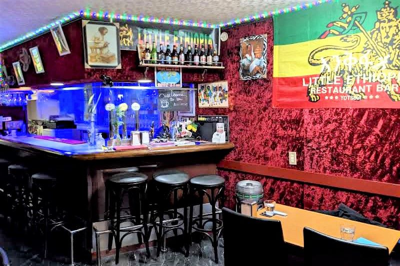 L’intérieur du restaurant éthiopien de Yotsugi « Little Ethiopia », avec son bar (à gauche)