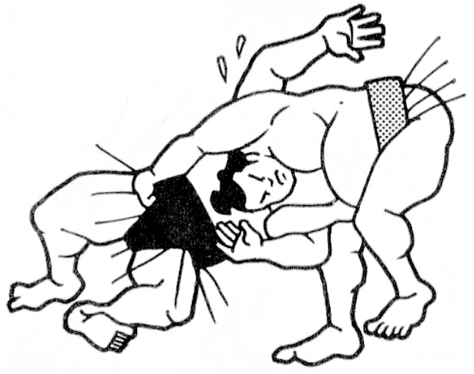 Il s’agit d’une technique spectaculaire consistant à attraper le mawashi de son adversaire et à placer une jambe à l’intérieur de ses cuisses pour le soulever et le projeter sur le côté.