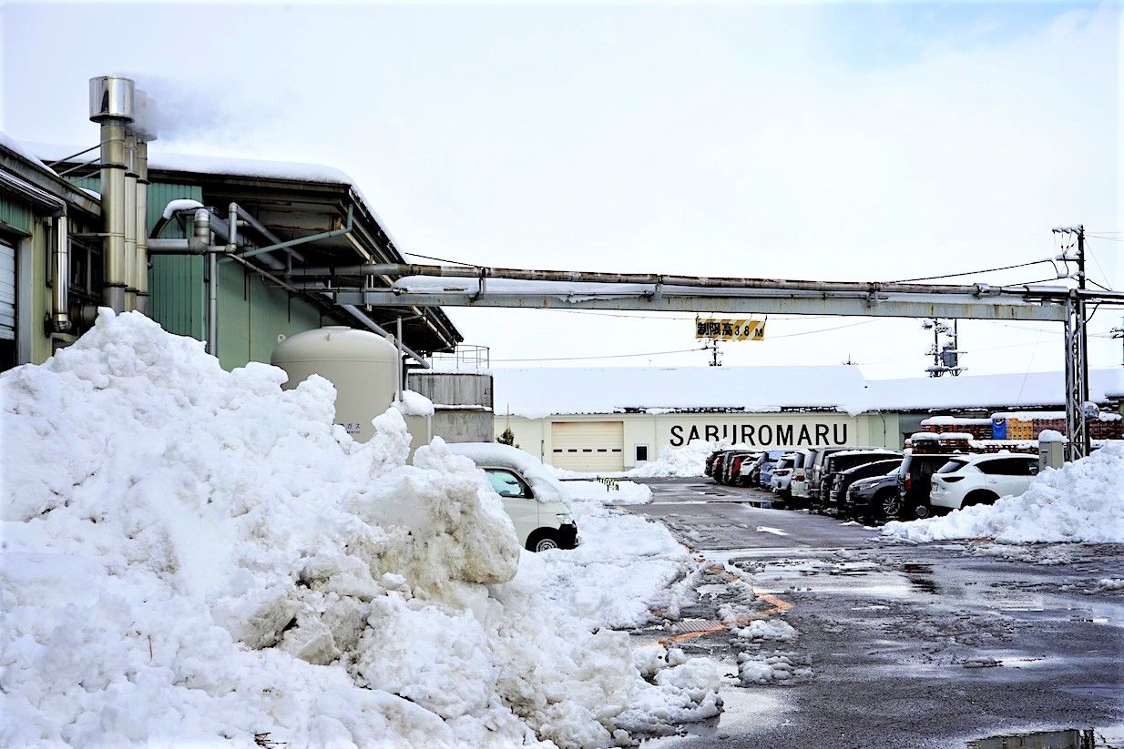 La distillerie Saburômaru était enneigée en janvier. Le climat local donne son caractère unique à ce whisky.