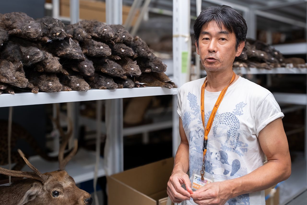 Kawada Shin’ichirô, responsable de la conservation de la collection d’animaux stockée dans les départements de recherche de Tsukuba, soit pas moins de 86 000 spécimens de mammifères. (© Hayashi Michiko)