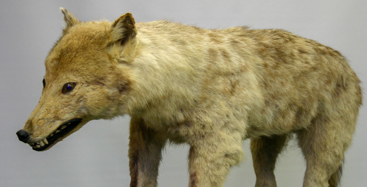 L’analyse récente de l’ADN nucléaire des spécimens de Leyde a permis de comprendre davantage leur taxonomie. Sur les trois spécimens, le squelette avec crâne n’est pas un loup, mais un chien domestique et l’animal empaillé, quant à lui, est très probablement un hybride loup-chien.