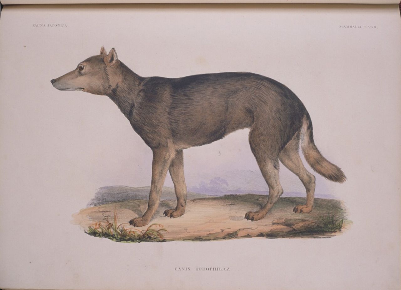 Illustration de Canis hodophilax, extraite de l’ouvrage Fauna Japonica. (Avec l’aimable autorisation de la Division des sciences biologiques de l’université de Kyoto)