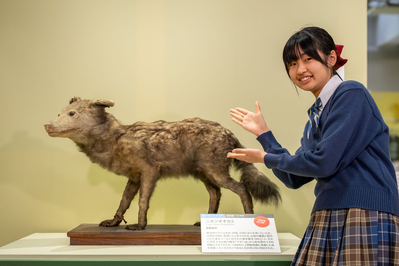(Photo de titre : Komori Hinako et le spécimen de loup japonais qu’elle a découvert dans les départements de recherche de Tsukuba du Musée national de la nature et des sciences. © Hayashi Michiko)
