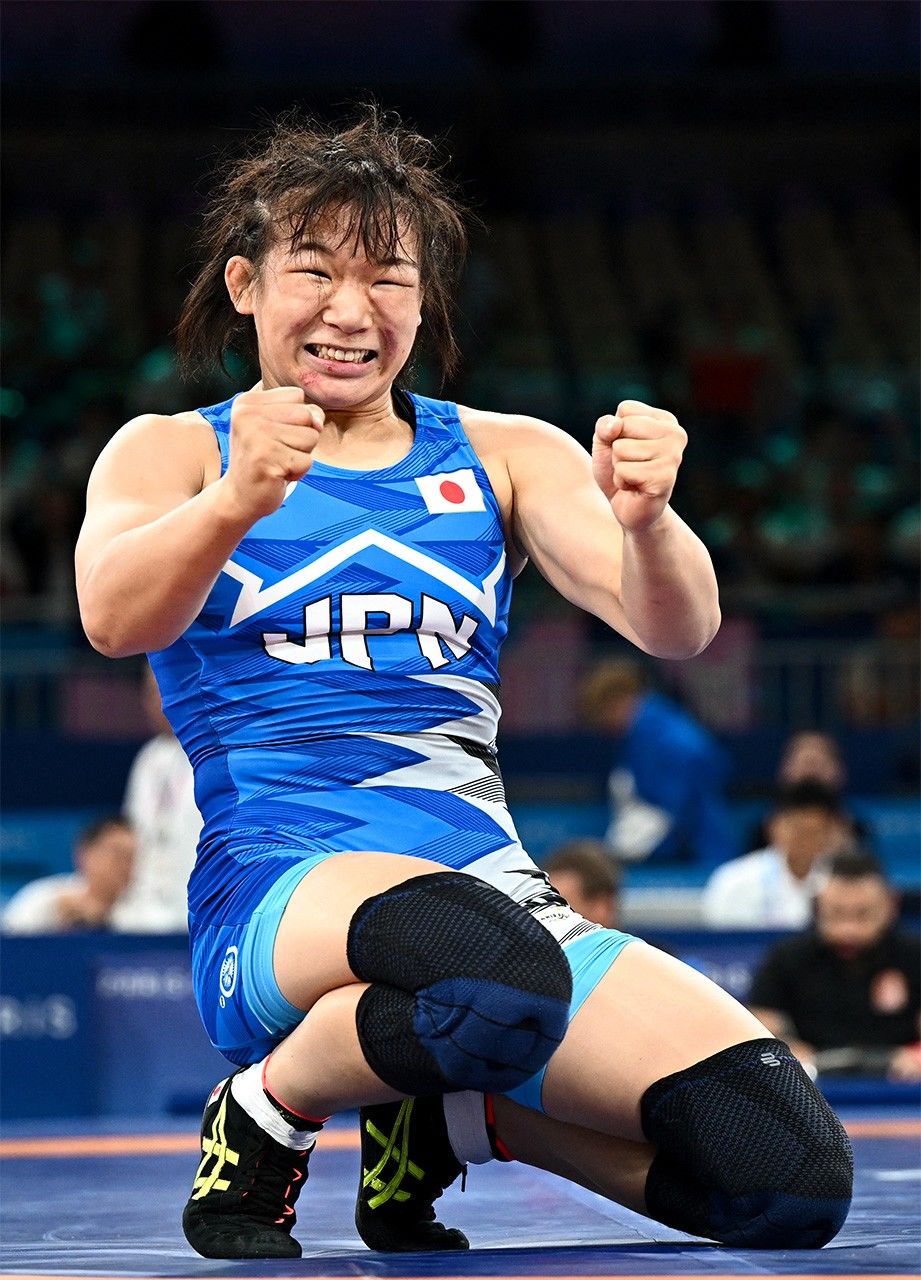 Lutte féminine : Motoki Sakura remporte l’or dans la catégorie des 62 kg. Une belle réussite pour sa première participation aux Jeux olympiques à Paris, le 10 août 2024. (Reuters)