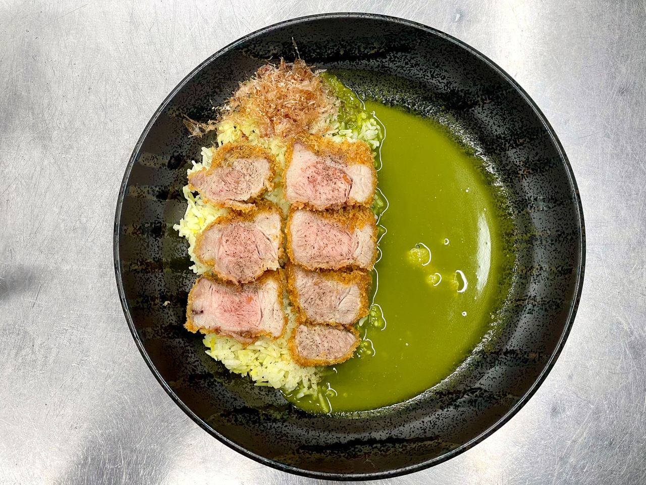Un katsu kare vert coûte 1 700 yens (avec l’aimable autorisation de Japanese Spice Curry Wacca)