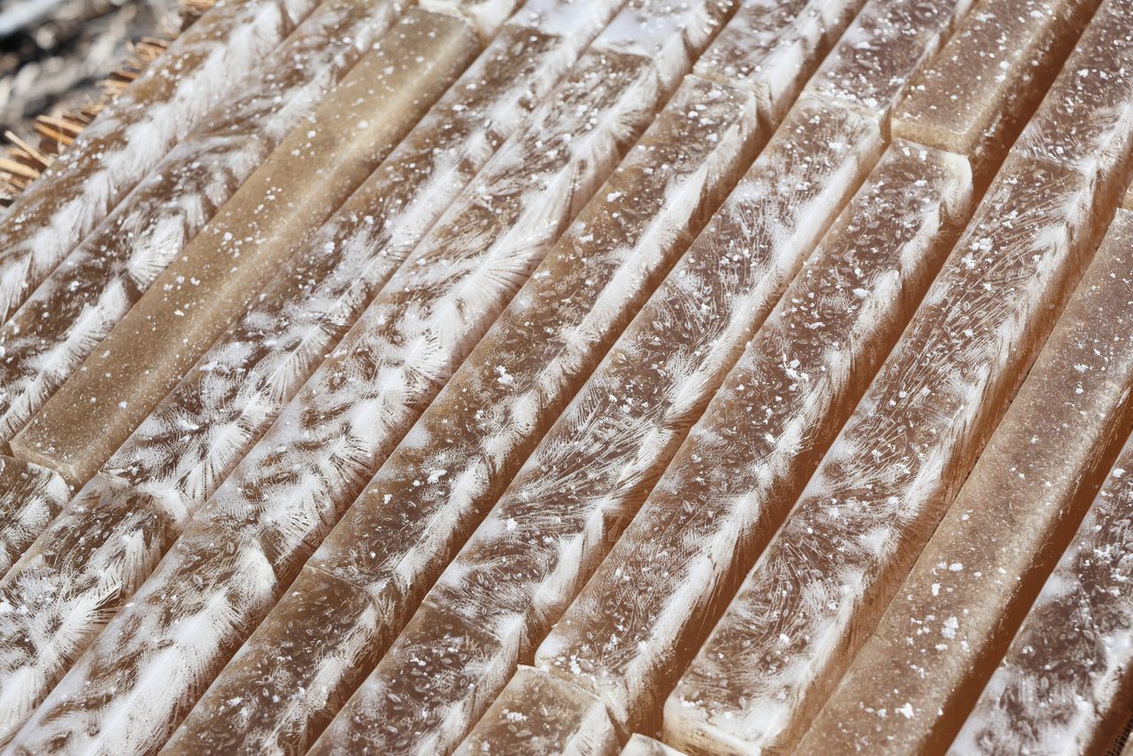 Les bâtonnets de kanten sont déposés dans des cadres en bois qu’on enlève à la fin.