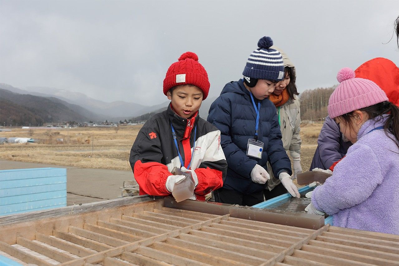 Le jour de notre visite, nous rencontrons un groupe d’élèves de CP et de collégiens venus de Suwa à la découverte de l’industrie locale. On leur a donné des gants et expliqué comment couper les bâtonnets. L’un disait « ça s’est cassé » et on lui répondait « ce n’est pas grave si c’est juste un petite bout ». Ce type de visite est possible car Irisen a compris que même si le kanten est déclassé, il peut encore se vendre.