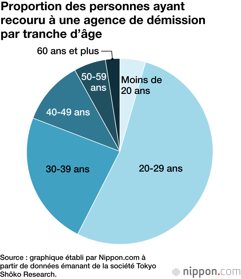 On le comprend bien avec le cas de cette quadragénaire, les employés dans la vingtaine ne sont pas les seuls à faire appel à des agences spécialisées dans les démissions. Une étude menée par Tokyo Shôkô Research entre le 2 et le 9 juin 2025 a révélé que si 53,7 % des personnes qui ont eu recours à de telles agences avaient une vingtaine d’années, 35 % avaient entre 30 et 50 ans. Ces résultats montrent que les agences reçoivent également maintenant des demandes de la part de travailleurs en milieu de carrière, et pas seulement de jeunes employés.