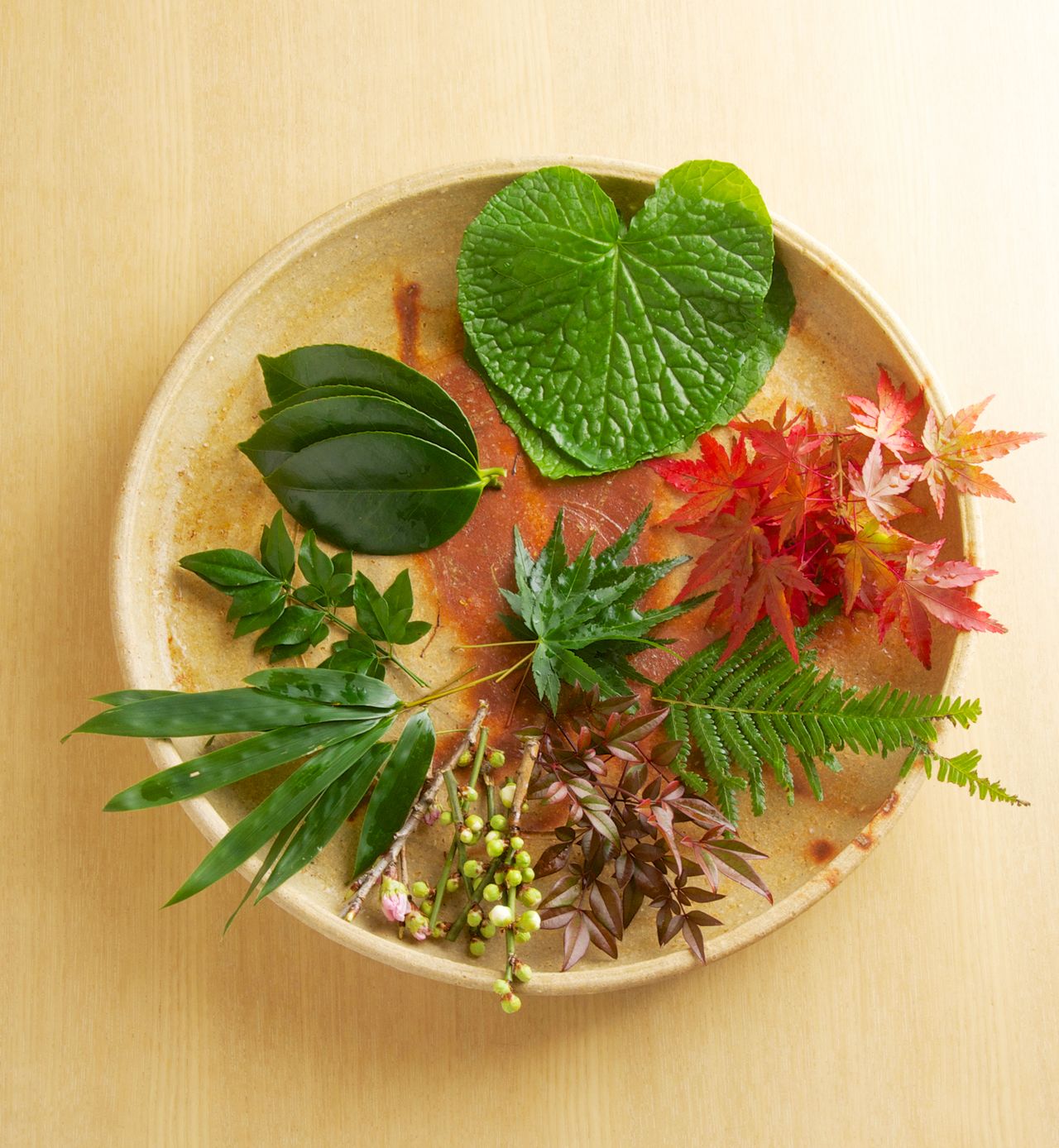 On appelle tsumamono les feuilles et fleurs de saison qui servent à décorer les plats japonais. Parmi les plus populaires figurent les feuilles d’érable, de bambou nain, et de bambou sacré (nandina).