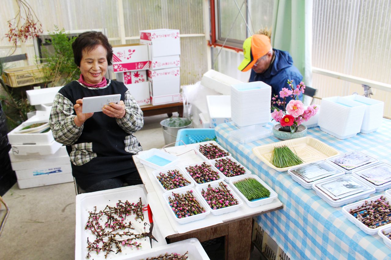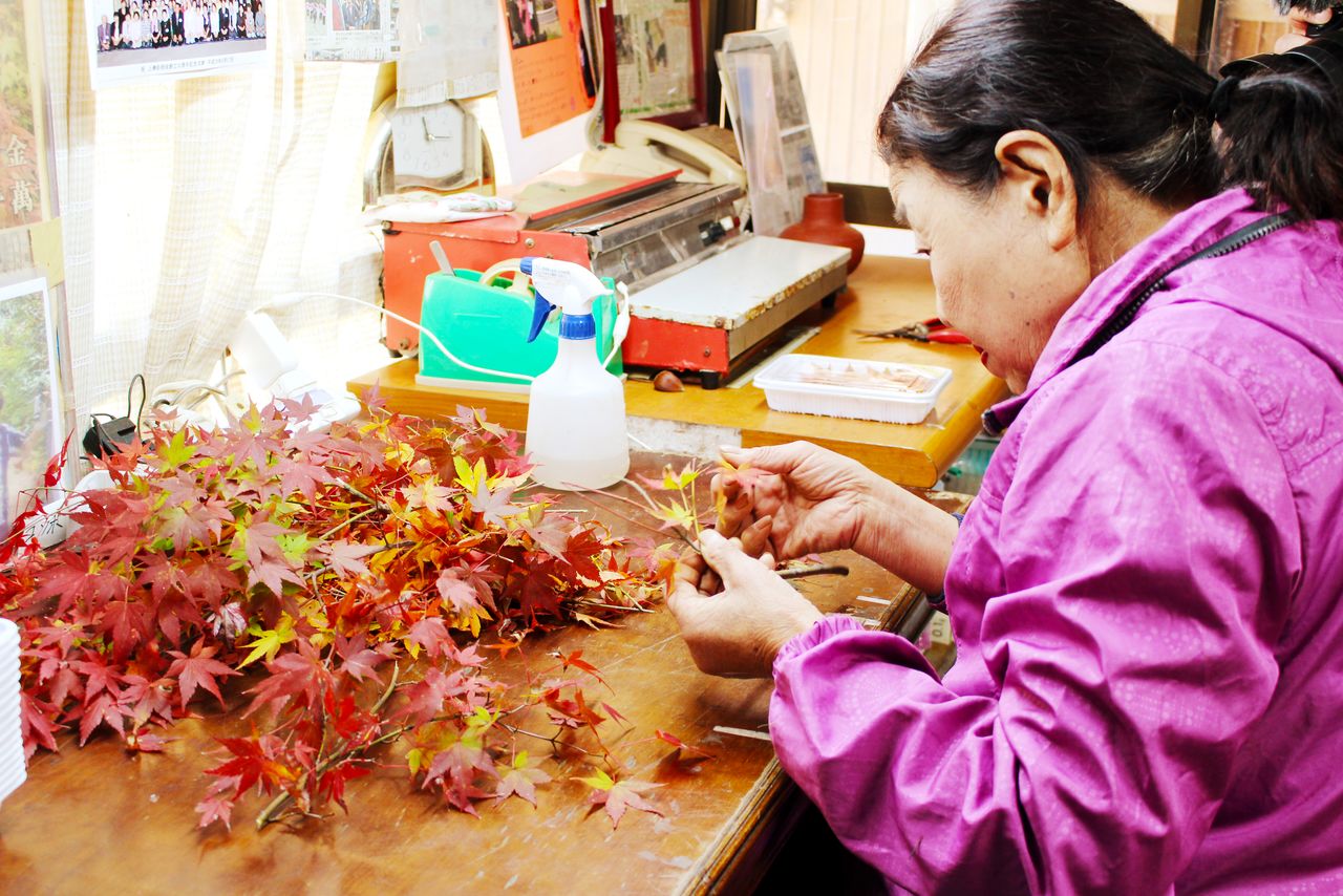 Yokoishi Tomoji, président de la société privée « Irodori » qui gère la vente des tsumamono, pense que c’est autant les gens que les garnitures végétales qui font la différence. Avec tous ses arbres à fleurs nichés au fond des montagnes, Kamikatsu était déjà un terreau fertile pour la cueillette de feuilles. Mais l’élément le plus essentiel selon lui, c’est le caractère des personnes qui ont l’habitude de marcher en montagne tous les jours pour faire divers travaux agricoles.