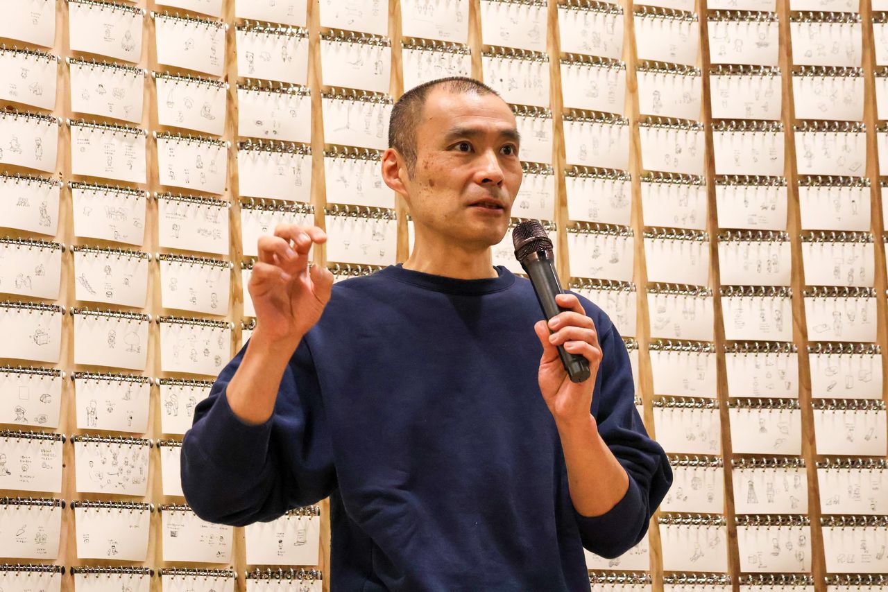 Aujourd’hui de retour au Musée créatif de Tokyo (CREATIVE MUSEUM TOKYO), l’exposition a été étoffée de nombreux nouveaux éléments. Avant le vernissage, Yoshitake a tenu une conférence où il a discuté de l’acheminement de l’exposition.