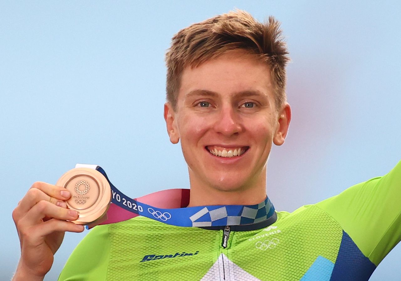 Tadej Pogacar et sa médaille de bronze obtenue pour la Slovénie aux Jeux Olympiques de Tokyo./Photo prise le 24 juillet 2021/REUTERS/Matthew Childs