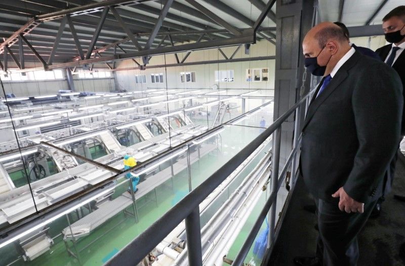 Le Premier ministre russe, Mikhaïl Michoustine, en visite sur l’île d’Itouroup. La Russie prévoit de construire 51 infrastructures militaires supplémentaires sur les îles Kouriles - un territoire revendiqué par le Japon - a annoncé lundi le ministère de la Défense russe, cité par l’agence TASS. /Photo prise le 26 juillet 2021/REUTERS/Sputnik/Dmitry Astakhov