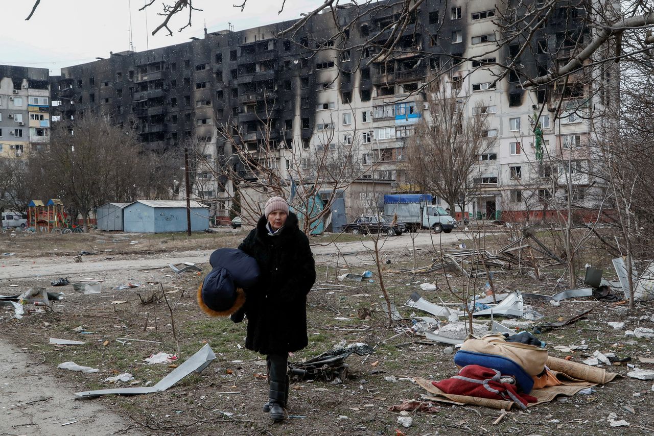 Marioupol a subi la pire catastrophe humanitaire du conflit, avec des centaines de milliers de civils piégés dans des sous-sols, sans nourriture, eau ni électricité. Les responsables municipaux ont déclaré ne pas connaître le nombre de victimes après l’attaque du théâtre. /Photo prise le 17 mars 2022/REUTERS/Alexander Ermochenko