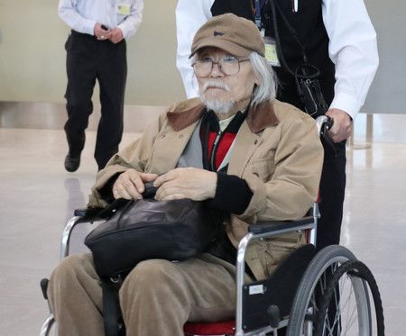 Matsumoto Leiji à son retour au Japon, le 5 décembre à l’aéroport de Narita