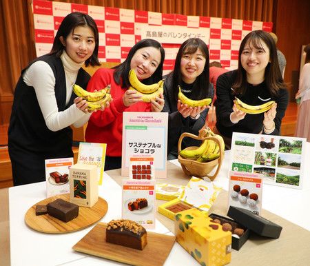 La grande enseigne Takashimaya présente par exemple quatre types de cakes aux bananes, qui sensibilisent au gâchis de la nourriture : cette pâtisserie (1 944 yens l’unité, soit 15 euros) utilise des bananes qui n’ont pas pu être vendues à cause de leur apparence « disgracieuse », alors que leur goût et leur texture étaient tout à fait satisfaisantes.