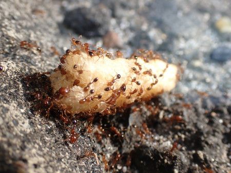 Des fourmis de feu dévorant une sucrerie (photo d’octobre 2021)