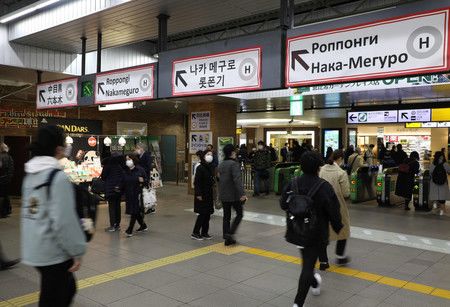 Sur la pancarte est écrit « Roppongi » et « Naka-meguro », le nom de deux stations de métro situées sur la ligne Hibiya. Elle avait été installée en 2018, en amont des Jeux olympiques d’été de Tokyo, afin de guider les éventuels visiteurs, notamment car l’ambassade de Russie se trouve sur la ligne Hibiya.