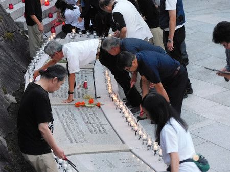 Des proches des 520 victimes et d’autres personnes ont grimpé la crête du mont Osutaka, dans le village d’Ueno (préfecture de Gunma), où a eu lieu l’accident, afin de se recueillir devant les stèles érigées en leur nom.
