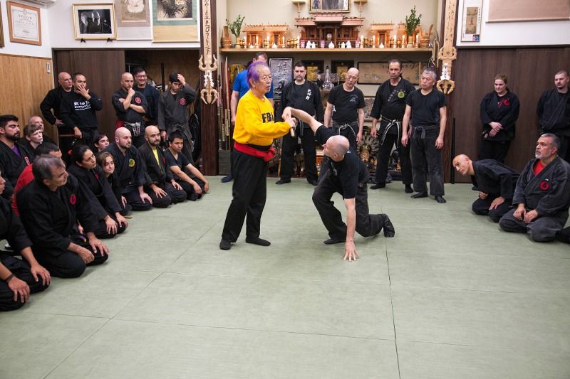 À environ une heure de train du centre de la capitale, à Noda, dans la préfecture de Chiba, se trouve le Bujinkan, le dôjô dirigé par Hatsumi Masaaki, 34e grand maître du Togakushi-ryû ninpô, une école de ninjutsu vieille de 900 ans. Des gens venus des quatre coins du monde font expressément le voyage, souvent long, afin de suivre son précieux enseignement qu’il a enrichi de diverses techniques ancestrales d’arts martiaux. Ce jour-là, une centaine de disciples du grand maître foulaient les 50 tatamis du dôjô pour s’entraîner.