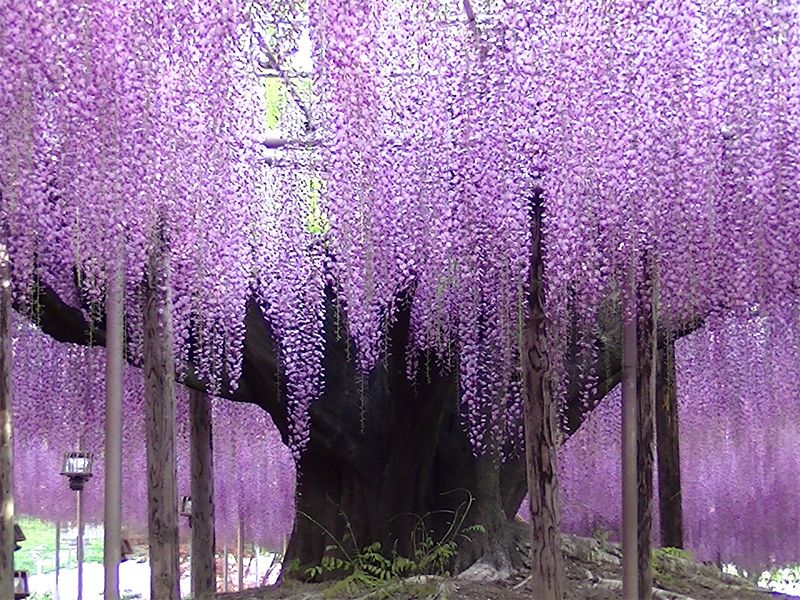 La glycine géante transplantée en 1996 dans le parc floral d’Ashikaga est à présent âgée de 150 ans. (© Ashikaga Flower Park)