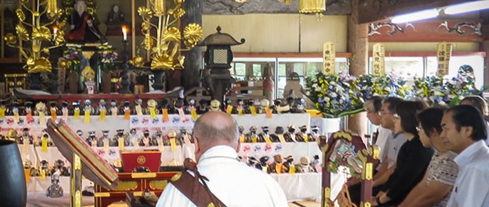Un service funéraire collectif pour différents modèles d’Aibo. (Photo : Norimatsu Nobuyuki/ A-Fun)