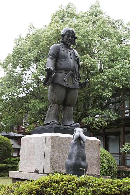 Ôkuninushi, aussi appelé d’un surnom plus populaire Daikoku-sama, conseille le lapin blanc, écorché par le crocodile (ou un requin dans d’autres versions), l’une des scènes les plus connues des anciens mythes japonais.