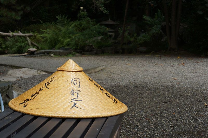 Les chapeaux des pèlerins portent l’inscription « toujours en compagnie » faisant référence à l’esprit protecteur de Kûkai.