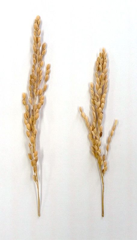 Comparaison entre le Yamada Nishiki (à gauche) et le riz de cuisine ordinaire Kinu Hikari (à droite).