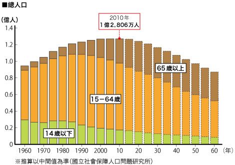第二點是支撐老齡人口的納稅人不斷減少。根據國家人口推算,到2060年,65歲以上的老齡人口將達到總人口的4成,負擔一位老齡人的在職人員將從2010年的2.8人減少到1.3人。政府認為,如果部分老齡者不就職參與到贍養方來,社會保障制度就難以維繫。