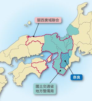 也就是說,以近畿地區為例,它意味著必須成立“由國土交通省地方整備局管轄的全部府縣參加的廣域聯合”,否則將不能移交。但由於奈良縣拒絕參加關西廣域聯合,所以無法具備接收方所應有的條件。政府進而甚至還可以“奈良沒有加入,所以事出無奈”為由,把責任轉嫁給地方。