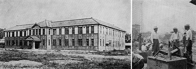 1921年前後,中央氣象臺的本館(左)。1940年,中央氣象臺大手町分部因雷災全部燒毀(右) 照片提供:氣象廳