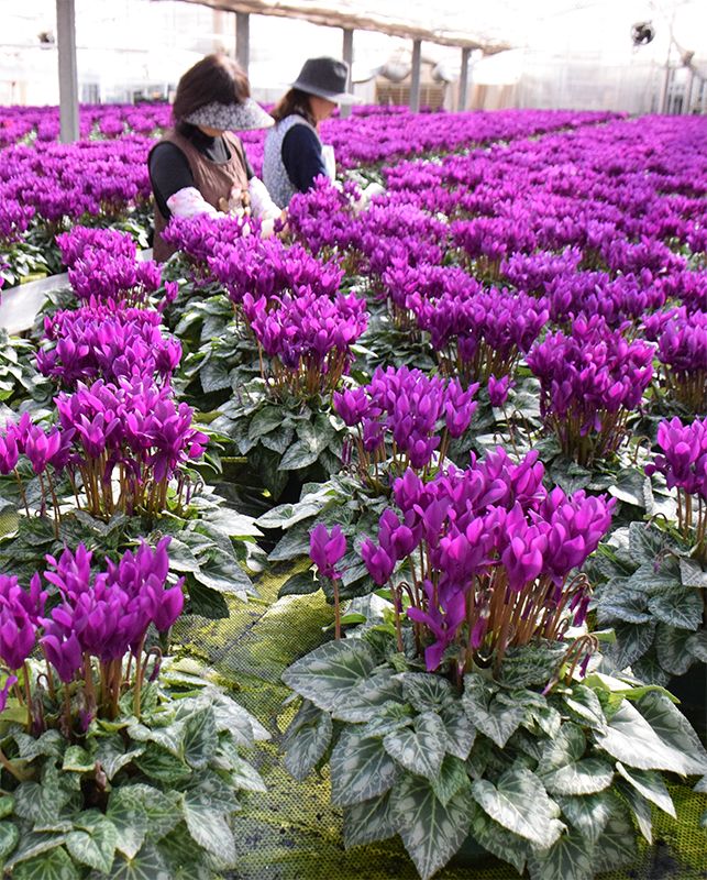 擔任開發與生產的大榮花園(成田市)的高橋康弘社長表示「為了製造出藍色的原色花了10年的時間。它相當耐熱。因此我們希望購買者能享受整年都能觀賞的樂趣」。藍色仙客來非常稀有,它的流通量僅佔全體的1%。