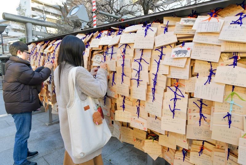 掛「繪馬」,祈求金榜題名(Japan in Photos) Newsfrom Japan 文化 2018.01.21 English 日本語 简体字 繁體字 Français Español العربية Русский 日本大學入學考試熱季來臨,考生們前往湯島天滿宮(湯島天神)許願,掛上寫著自己心願的小木牌「繪馬」,祈求高考順利,「金榜題名」。湯島天滿宮以祀奉「學問之神」菅原道真而聞名。(12日,東京都文京區,時事社) 神社 繪馬 大學入學考試 菅原道真 湯島天滿宮