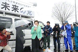 眾議院大選公告當天就在福島縣展開競選演講的嘉田,卻……(照片提供:福島民報社)