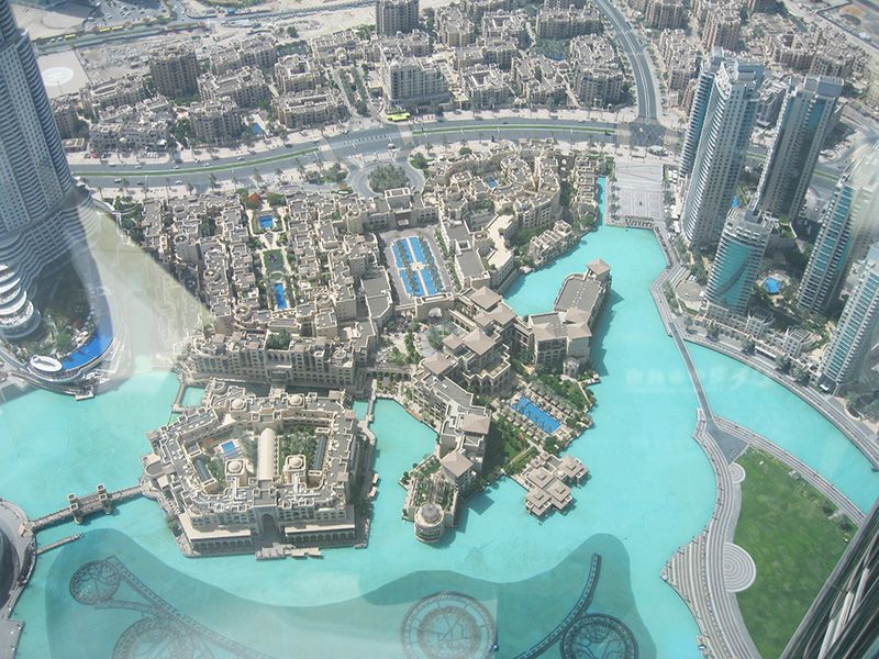 杜拜是一個將未來和過去絕妙地交織在一起的城市國家。市中心聳立著160樓828m的世界最高摩天樓哈里發塔,乘上高速電梯一氣登上它的觀景台(AT THE TOP),極目四方,豆粒般大小的高層樓群在沙漠的襯託中一望無際,它猶如電影的布景,又像是充滿未來情趣的庭院式盆景。