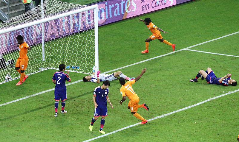 果不其然,在首戰象牙海岸隊的比賽中,日本隊反勝為敗,以1比2告負。