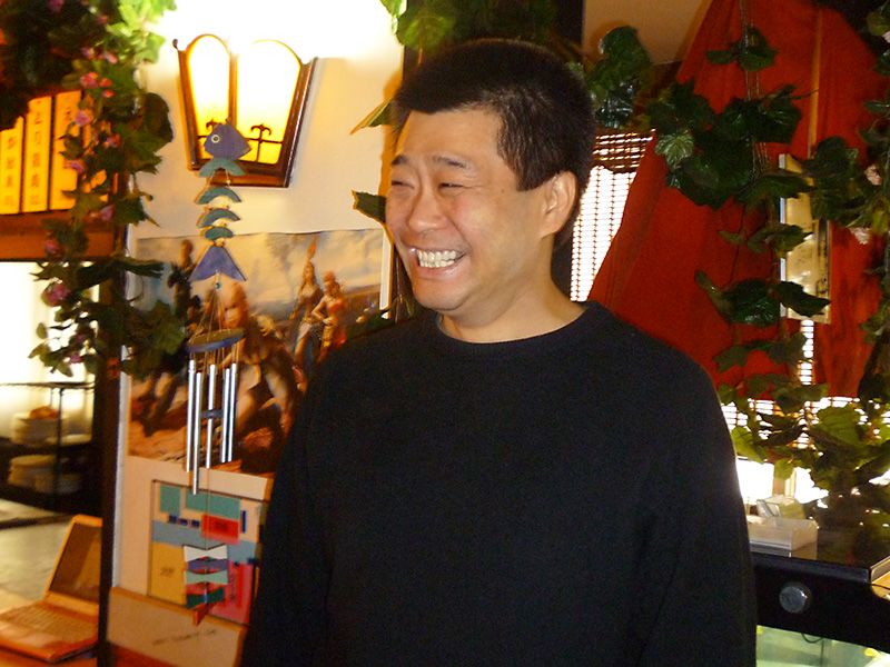 新西里稍稍遠離市中心,建築物都比較老舊,不知什麼原因,到處是日本料理店,而且烤串店還日本式「大紅燈籠高高掛」。「屋根裏」在位於中街盡頭一幢小樓的二樓,走進瓦葺門簷的大門沿樓梯而上,順著左側的小小走廊,就進到店裏了。總經理湯凱向裏面打了個招呼,兩位年輕的姑娘就迎上前來,她們身著褶裙,圍著圍裙,一付女傭打扮。她們用日語問候說:「主人,您回來啦!」隨後就把記者引到餐桌前。