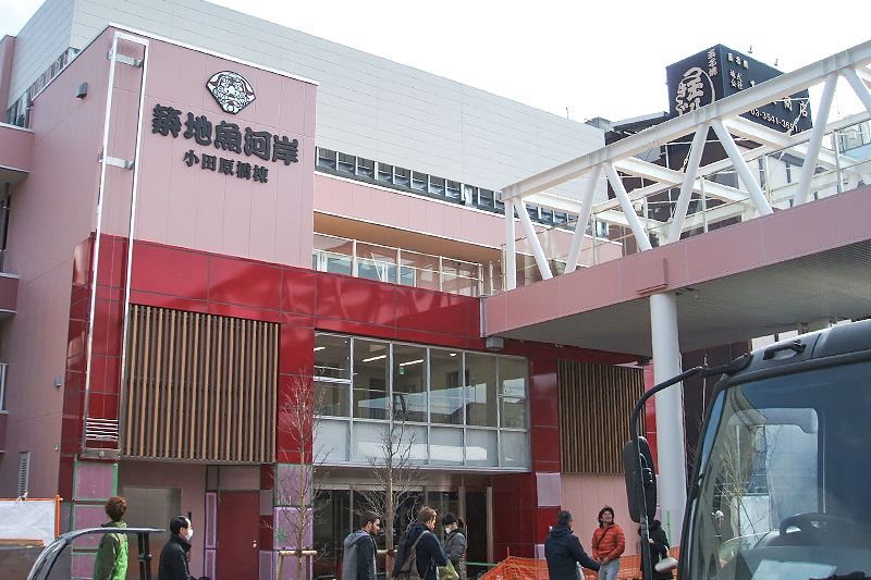「現有的場外市場的各家商店和新市場設施(「築地魚河岸」)將融為一體,作為新的築地市場,使各位業務相關人士能像以前一樣快捷而專心地採購,普通消費者也能好好品嚐只有在築地才能吃到的豐富品類」(同一網站),這是他們的意圖。新市場將進駐的大樓,其連接市場建築和場外區域的天橋部分已經展現雛形,工程已入佳境。