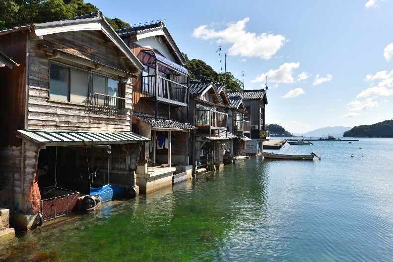 伊根向來有離海最近的小鎮之稱,這裡最大的特色是「舟屋」,也就是停船的屋子。伊根的舟屋群在江戶時期成形,以前叫舟小屋,主要是拿來放置乾燥船隻或漁具的地方,在80年前的道路拓寬工程後變成現在的樣貌,其特殊景觀成為國家指定的「重要傳統的建造物群保存地」。