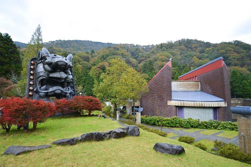 因為有許多與鬼有關的傳說,大江以鬼做為觀光賣點,大江車站前展示著日本各地的鬼瓦,車站前的鬼瓦公園也是為了展示而興建。町內更有以鬼為主題的「日本的鬼之交流博物館(日本の鬼の交流博物館)」,博物館外的大鬼瓦高5公尺、重達10頓,是日本國內最大的鬼瓦,相當具有迫力。博物館內則展示從奈良時代至現代,具代表性的鬼瓦與代表的傳統藝能,也有日本和外國妖怪的介紹。