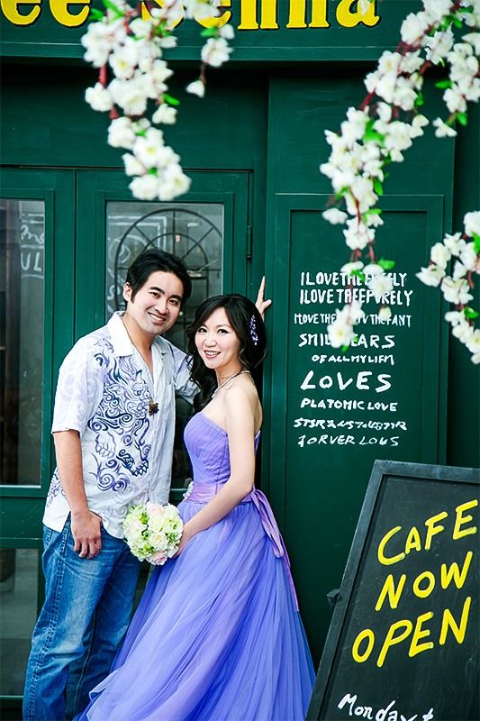 我壓根兒沒想過自己成為婚紗照男主角的那一天會到來,一開始被岳父母帶去婚紗店,挑選衣服,拍攝地點有兩種選擇,戶外或者是棚內,我們選在棚內拍攝。考慮到這樣一來,可以不用在意路人的眼光,也省去了移動時間和麻煩,拍攝也能盡快結束。然而,事與願違。我們當天早上8點開始,花了2個小時化妝、做髮型和穿禮服,接下來進行的拍攝實際上到晚上7點為止,在鍍鋅鐵板建造的倉庫裡面,猶如童話故事般的世界在眼前展開,活潑熱情的攝影師一邊喊著:「微笑再自然一點!」或是「雙方彼此深情相望!」我們就照做。以宮殿風格的沙龍、銀色世界、整片玫瑰牆、咖啡店為背景,浪漫唯美的婚紗照一張接著一張,拍個不停。